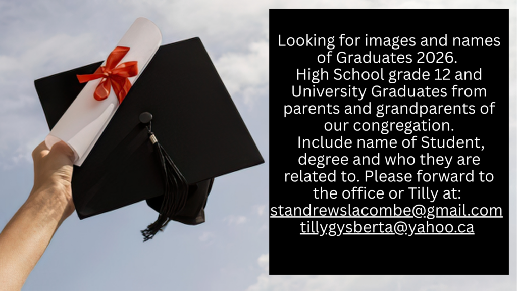 We acknowledge that St. Andrews United Church resides on land of “Treaty 6”. We respect the history, spirituality, and culture of the indigenous peoples with whom the land treaty was signed.