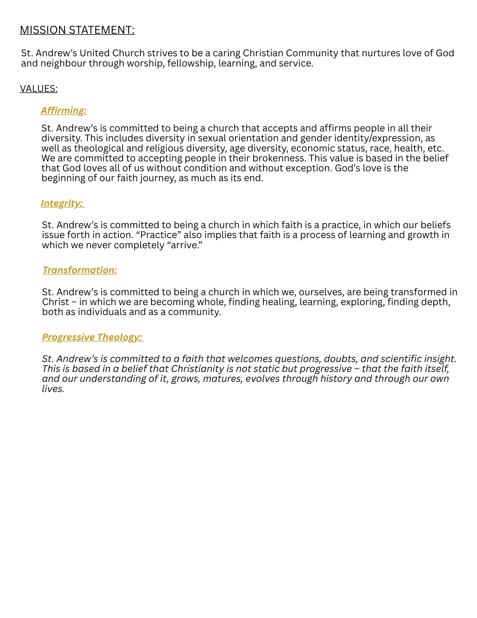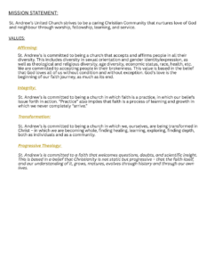 St. Andrew’s United Church strives to be a caring Christian Community that nurtures love of God and neighbour through worship, fellowship, learning, and service.